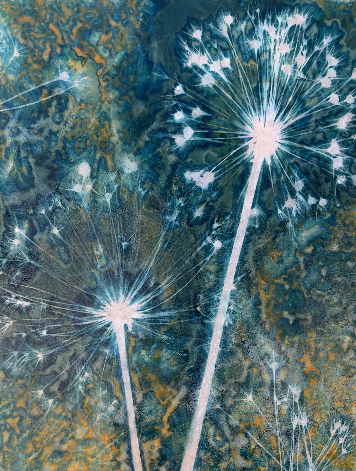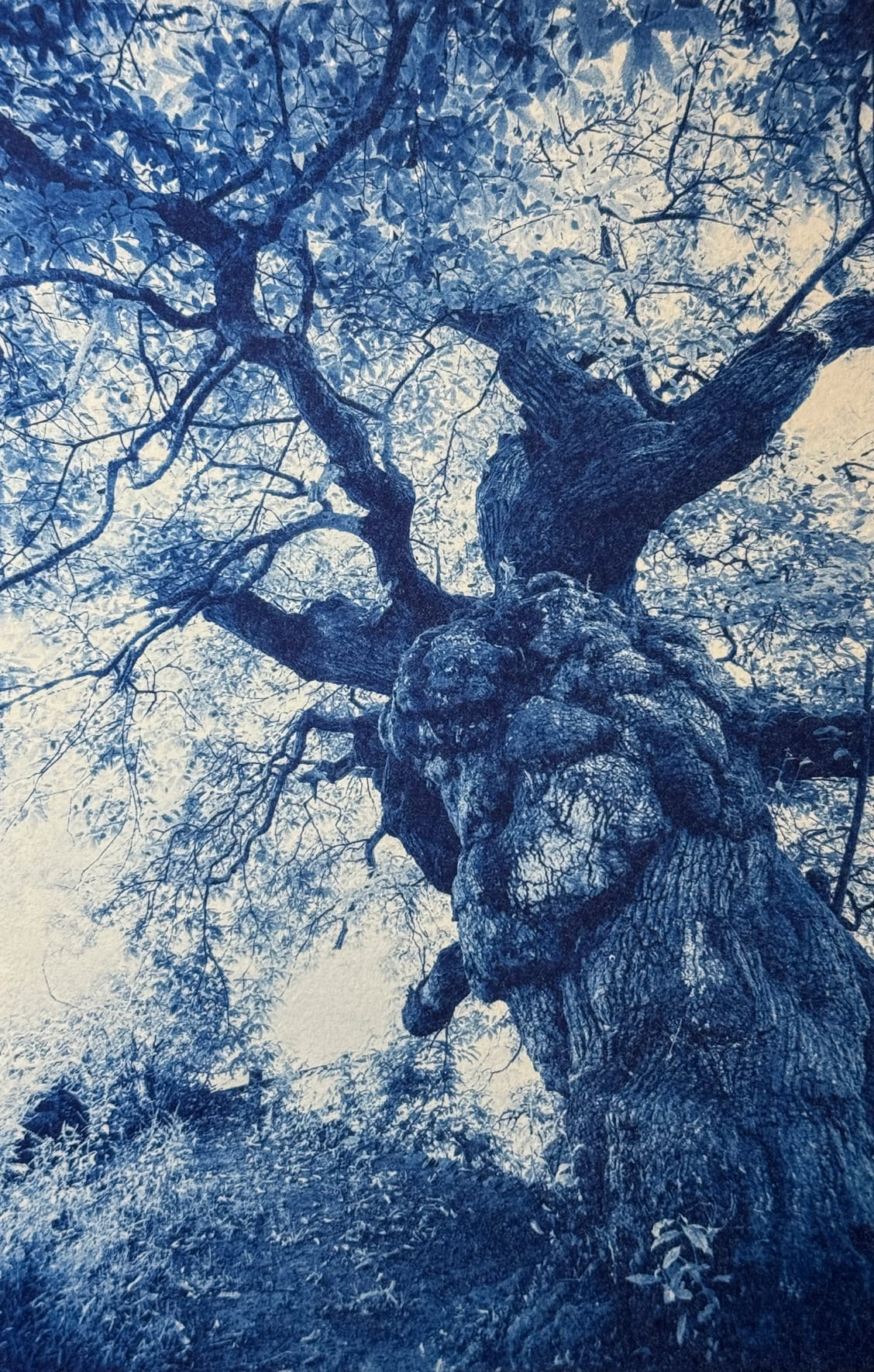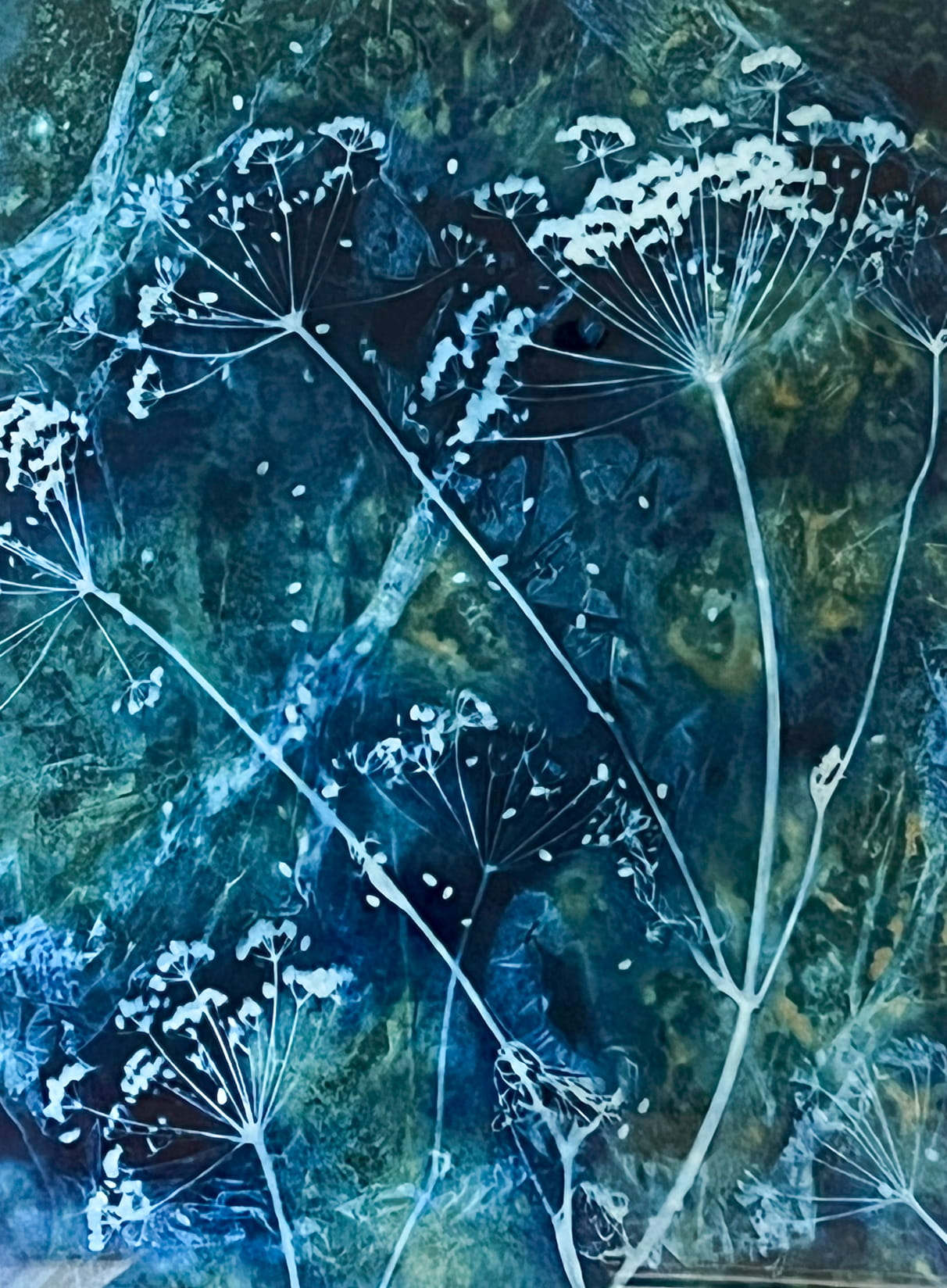 I use the historic printing processes of platinum/palladium, gum bichromate and cyanotype. These slow processes involve both digital and analog camera image capture, production of digital negatives, followed by hand coating and development of the image. When making cyanotypes, I often tone the images with botanical toners creating subtle color changes. All prints are unique, revealing the artist’s hand.